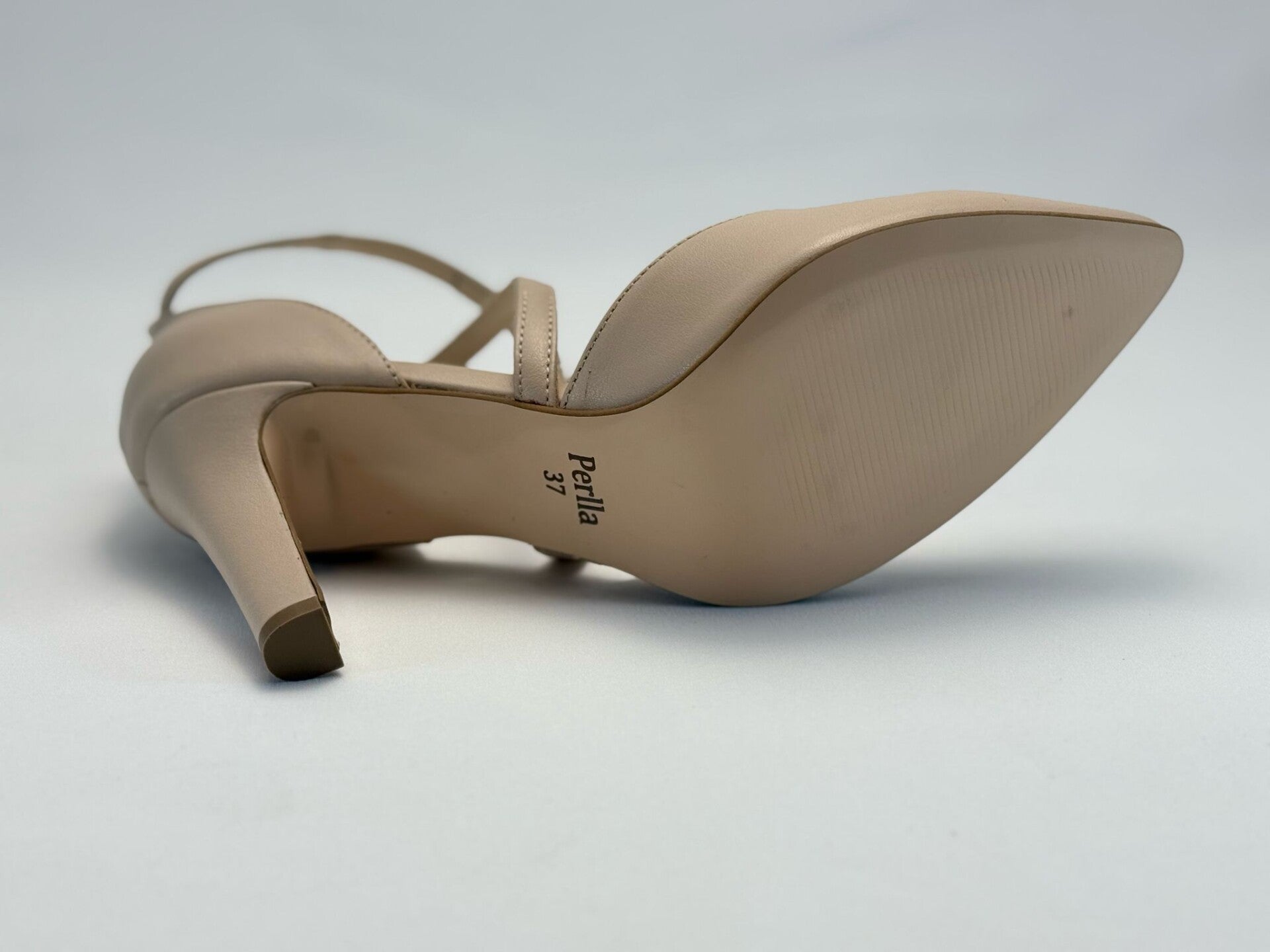 Beige zool, puntige teen en binnenzool met een speciale extra-comfort spons in natuurlijk beige mesina.