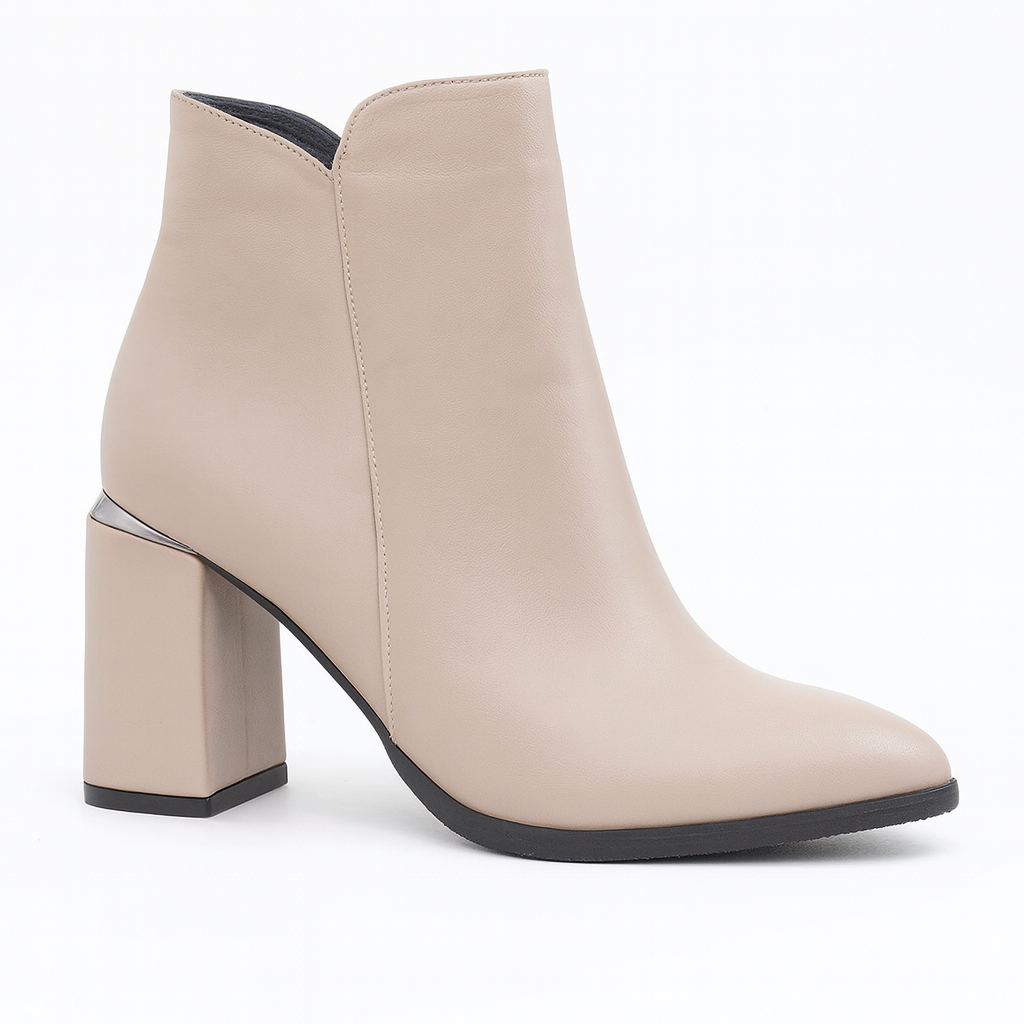 - Verfijning op zijn best – enkellaarsjes van hoogwaardig taupekleurig leer met een sophisticated design, perfect voor zowel zakelijke als elegante outfits